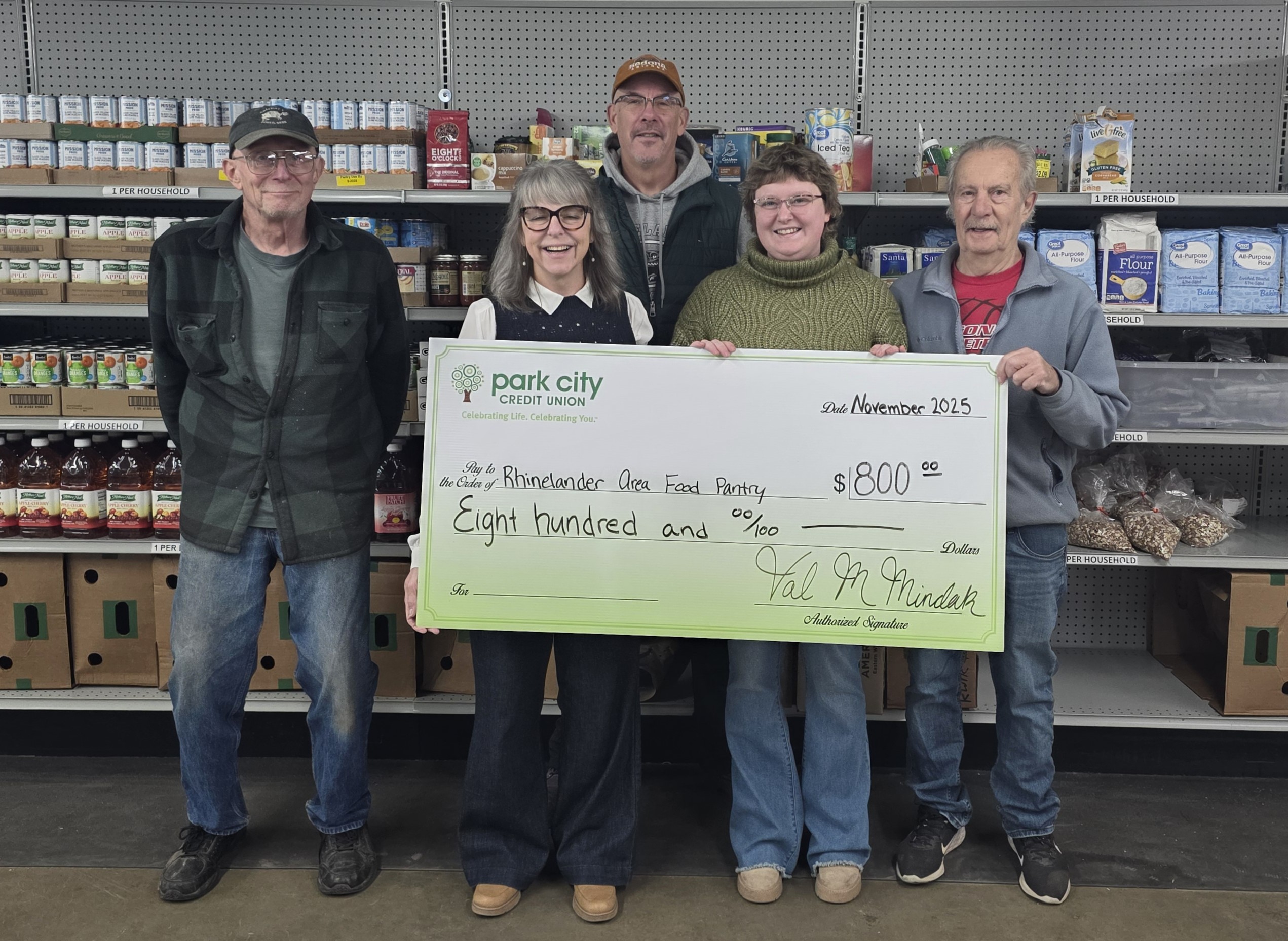 MERRILL, WISC. – As the need for food continues to grow, Park City Credit Union remains committed to our community by donating $3,800 to food pantries in Rhinelander, Minocqua, Tomahawk, and